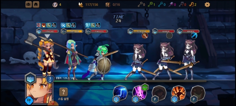 캐릭터를 누르면 우측하단에 스킬들이 나옵니다.