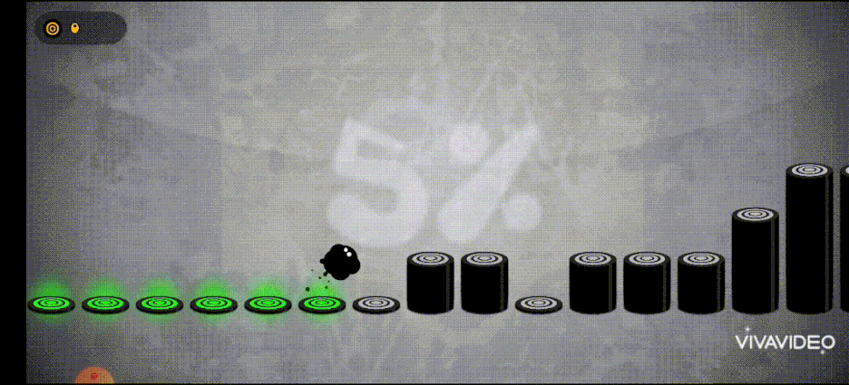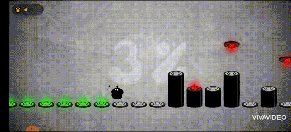 먼지 같은 캐릭터가 박자에 맞춰 점프를하고